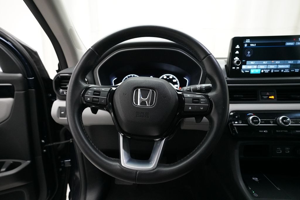 Obsidian Blue Pearl EX-L AWD 10-Speed Automatic 3.5L V6 DOHC 24V **BLUETOOTH**, **REAR VIEW CAMERA**, **BLINDSPOT DETECTION**, **ADAPTIVE CRUISE CONTROL**, **LEATHER**, **HEATED SEATS**, **LANE KEEPING ASSIST**, **REAR PARK ASSIST**, **APPLE CAR PLAY/ANDROID AUTO**, **ROAD DEPARTURE ALERT**, **POWER LIFT GATE**, Pilot EX-L 8 Passenger, 4D Sport Utility, 3.5L V6 DOHC 24V, 10-Speed Automatic, AWD, Obsidian Blue Pearl, Gray w/Leather Seat Trim, 3rd Row Seats, 4-Wheel Disc Brakes, 9 Speakers, ABS Brakes, Adaptive Cruise Control: Adaptive Cruise Control (ACC) with Low-Speed Follow, Air Conditioning, Alloy wheels, AM/FM Radio, Available Sirius XM Radio, Apple CarPlay/Android Auto, Auto High-beam Headlights, Auto-dimming Rear-View mirror, Automatic temperature control, Axle Ratio: 4.167, Blind Spot Information (BSI) System warning, Brake Assist, Bumpers: body-color, Delay-off headlights, Driver door bin, Driver vanity mirror, Dual front impact airbags, Dual front side impact airbags, Dual-Climate Control, Electronic Stability Control, Emergency communication system: HondaLink Assist, Four wheel independent suspension, Front anti-roll bar, Front Bucket Seats, Front Center Armrest, Front Fog Lights, Front reading lights, Fully Automatic Headlights, Garage door transmitter: HomeLink, Heated Front Bucket Seats, Heated Front Seats, Heated Sideview Mirrors, Illuminated Entry, Knee airbag, Lane departure: Lane Keeping Assist System (LKAS) active, Leather Seat Trim, Low tire pressure warning, Memory seat, Occupant sensing airbag, Outside Temperature Display, Overhead airbag, Overhead Console, Panic Alarm, Passenger door bin, Passenger vanity mirror, Power Adjusting Driver Seat, Power Liftgate, Power passenger seat, Power Sideview Mirrors, Power Steering, Power Windows, Radio data system, Radio: 245-Watt Audio System, Rear air conditioning, Rear anti-roll bar, Rear reading lights, Rear seat center armrest, Rear Spoiler, Rear Window Wiper, Rear/Front Window Defroster, Reclining 3rd row seat, Remote Keyless Entry, Security System, Speed Control, Speed-Sensing Steering, Speed-Sensitive Wipers, Split Folding Rear Seat, Steering Wheel Mounted Controls, Tachometer, Telescoping steering wheel, Tilt steering wheel, Traction Control, Trip computer, Turn signal indicator mirrors, Variably intermittent wipers, Wheels: 18" Machined Face Pewter Gray, Pilot EX-L 8 Passenger, 4D Sport Utility, 3.5L V6 DOHC 24V, 10-Speed Automatic, AWD, Obsidian Blue Pearl, Gray w/Leather Seat Trim. CARFAX One-Owner. Clean CARFAX. Certified.