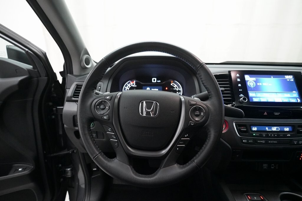 Modern Steel Metallic RTL AWD 9-Speed Automatic 3.5L V6 SOHC i-VTEC 24V **BLUETOOTH**, **REAR VIEW CAMERA**, **BLINDSPOT DETECTION**, **ADAPTIVE CRUISE CONTROL**, **LEATHER**, **HEATED SEATS**, **SUNROOF/MOONROOF**, **REAR PARK ASSIST**, **APPLE CAR PLAY/ANDROID AUTO**, **ROAD DEPARTURE ALERT**, Ridgeline RTL, 4D Crew Cab, 3.5L V6 SOHC i-VTEC 24V, 9-Speed Automatic, AWD, Modern Steel Metallic, Black Leather, 4-Wheel Disc Brakes, 4.33 Axle Ratio, 7 Speakers, ABS Brakes, Air Conditioning, Alloy wheels, AM/FM Radio, Available Sirius XM Radio, Apple CarPlay/Android Auto, Auto-dimming Rear-View mirror, Automatic temperature control, Blind Spot Information (BSI) System warning, Bluetooth® Hands-Free Link, Brake Assist, Bumpers: body-color, Delay-off headlights, Driver door bin, Driver vanity mirror, Driver's Seat Mounted Armrest, Dual front impact airbags, Dual front side impact airbags, Dual-Climate Control, Electronic Stability Control, Four wheel independent suspension, Front anti-roll bar, Front Bucket Seats, Front Fog Lights, Front reading lights, Fully Automatic Headlights, Garage door transmitter: HomeLink, Heated Front Bucket Seats, Heated Front Seats, Heated Sideview Mirrors, Illuminated Entry, Leather Seat Trim, Low tire pressure warning, Memory seat, Occupant sensing airbag, Outside Temperature Display, Overhead airbag, Overhead Console, Panic Alarm, Passenger door bin, Passenger seat mounted armrest, Passenger vanity mirror, Power Adjusting Driver Seat, Power Moonroof, Power passenger seat, Power Sideview Mirrors, Power Steering, Power Windows, Radio data system, Radio: 215-Watt Audio System w/7 Speakers, Rear air conditioning, Rear anti-roll bar, Rear reading lights, Rear seat center armrest, Rear Step Bumper, Rear-View Camera, Rear/Front Window Defroster, Remote Keyless Entry, Security System, SiriusXM, Speed Control, Speed-Sensing Steering, Split Folding Rear Seat, Steering Wheel Mounted Controls, Tachometer, Telescoping steering wheel, Tilt steering wheel, Traction Control, Trip computer, Turn signal indicator mirrors, Variably intermittent wipers, Wheels: 18" Exclusive Pewter Gray Alloy, Ridgeline RTL, 4D Crew Cab, 3.5L V6 SOHC i-VTEC 24V, 9-Speed Automatic, AWD, Modern Steel Metallic, Black Leather. Recent Arrival! CARFAX One-Owner. Certified.