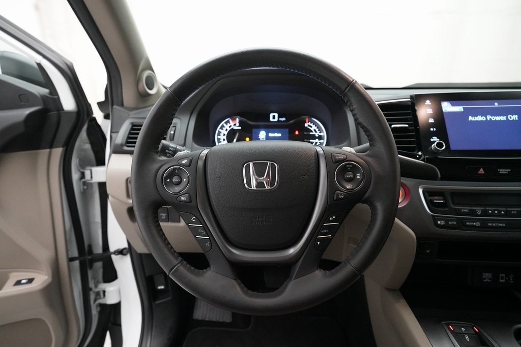 Platinum White Pearl RTL AWD 9-Speed Automatic 3.5L V6 SOHC i-VTEC 24V **BLUETOOTH**, **REAR VIEW CAMERA**, **BLINDSPOT DETECTION**, **ADAPTIVE CRUISE CONTROL**, **LEATHER**, **HEATED SEATS**, **SUNROOF/MOONROOF**, **LANE KEEPING ASSIST**, **REAR PARK ASSIST**, **APPLE CAR PLAY/ANDROID AUTO**, **ROAD DEPARTURE ALERT**, Ridgeline RTL, 4D Crew Cab, 3.5L V6 SOHC i-VTEC 24V, 9-Speed Automatic, AWD, Platinum White Pearl, Beige w/Leather Seat Trim, 4-Wheel Disc Brakes, 4.33 Axle Ratio, 7 Speakers, ABS Brakes, Air Conditioning, Alloy wheels, AM/FM Radio, Available Sirius XM Radio, Apple CarPlay/Android Auto, Auto-dimming Rear-View mirror, Automatic temperature control, Blind Spot Information (BSI) System warning, Bluetooth® Hands-Free Link, Brake Assist, Bumpers: body-color, Delay-off headlights, Driver door bin, Driver vanity mirror, Driver's Seat Mounted Armrest, Dual front impact airbags, Dual front side impact airbags, Dual-Climate Control, Electronic Stability Control, Four wheel independent suspension, Front anti-roll bar, Front Bucket Seats, Front Fog Lights, Front reading lights, Fully Automatic Headlights, Garage door transmitter: HomeLink, Heated Front Bucket Seats, Heated Front Seats, Heated Sideview Mirrors, Illuminated Entry, Leather Seat Trim, Low tire pressure warning, Memory seat, Occupant sensing airbag, Outside Temperature Display, Overhead airbag, Overhead Console, Panic Alarm, Passenger door bin, Passenger seat mounted armrest, Passenger vanity mirror, Power Adjusting Driver Seat, Power Moonroof, Power passenger seat, Power Sideview Mirrors, Power Steering, Power Windows, Radio data system, Radio: 215-Watt Audio System w/7 Speakers, Rear air conditioning, Rear anti-roll bar, Rear reading lights, Rear seat center armrest, Rear Step Bumper, Rear-View Camera, Rear/Front Window Defroster, Remote Keyless Entry, Security System, SiriusXM, Speed Control, Speed-Sensing Steering, Split Folding Rear Seat, Steering Wheel Mounted Controls, Tachometer, Telescoping steering wheel, Tilt steering wheel, Traction Control, Trip computer, Turn signal indicator mirrors, Variably intermittent wipers, Wheels: 18" Exclusive Pewter Gray Alloy, Ridgeline RTL, 4D Crew Cab, 3.5L V6 SOHC i-VTEC 24V, 9-Speed Automatic, AWD, Platinum White Pearl, Beige w/Leather Seat Trim. Recent Arrival! CARFAX One-Owner. Clean CARFAX. Certified.