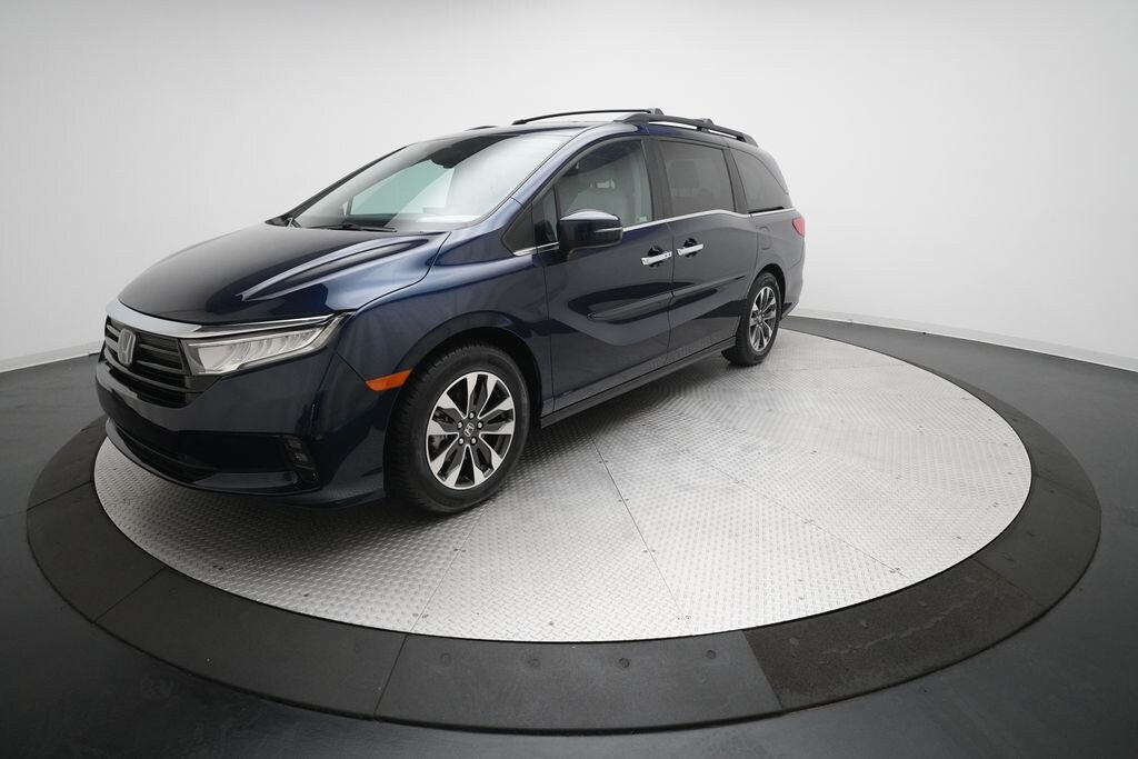 Obsidian Blue Pearl EX-L FWD 10-Speed Automatic 3.5L V6 SOHC i-VTEC 24V **BLUETOOTH**, **REAR VIEW CAMERA**, **BLINDSPOT DETECTION**, **ADAPTIVE CRUISE CONTROL**, **LEATHER**, **HEATED SEATS**, **SUNROOF/MOONROOF**, **LANE KEEPING ASSIST**, **REAR PARK ASSIST**, **APPLE CAR PLAY/ANDROID AUTO**, **ROAD DEPARTURE ALERT**, Odyssey EX-L, 4D Passenger Van, 3.5L V6 SOHC i-VTEC 24V, 10-Speed Automatic, FWD, Obsidian Blue Pearl, Gray w/Leather Seat Trim, 18" Machine-Finished Alloy Wheels, 3.61 Axle Ratio, 3rd Row Seats, 4-Wheel Disc Brakes, 7 Speakers, A/V remote: CabinControl, ABS Brakes, Adaptive Cruise Control: Adaptive Cruise Control (ACC) with Low-Speed Follow, Air Conditioning, Alloy wheels, AM/FM Radio, Available Sirius XM Radio, Anti-whiplash front head restraints, Apple CarPlay/Android Auto, Auto High-beam Headlights, Auto-dimming Rear-View mirror, Automatic temperature control, Blind Spot Information (BSI) System warning, Brake Assist, Bumpers: body-color, Delay-off headlights, Driver door bin, Driver vanity mirror, Driver's Seat Mounted Armrest, Dual front impact airbags, Dual front side impact airbags, Dual-Climate Control, Electronic Stability Control, Four wheel independent suspension, Front anti-roll bar, Front Bucket Seats, Front Fog Lights, Front reading lights, Fully Automatic Headlights, Garage door transmitter: HomeLink, Heated Front Bucket Seats, Heated Front Seats, Heated Sideview Mirrors, Illuminated Entry, Knee airbag, Lane departure: Lane Keeping Assist System (LKAS) active, Leather Seat Trim, Leather steering wheel, Low tire pressure warning, Memory seat, Occupant sensing airbag, Outside Temperature Display, Overhead airbag, Overhead Console, Panic Alarm, Passenger door bin, Passenger seat mounted armrest, Passenger vanity mirror, Power Adjusting Driver Seat, Power Liftgate, Power Moonroof, Power passenger seat, Power Sideview Mirrors, Power Steering, Power Windows, Radio data system, Radio: 160-Watt AM/FM/HD/SiriusXM Audio System, Rear air conditioning, Rear anti-roll bar, Rear reading lights, Rear seat center armrest, Rear Spoiler, Rear Window Wiper, Rear-View Camera, Rear/Front Window Defroster, Reclining 3rd row seat, Remote Keyless Entry, Security System, Speed Control, Speed-Sensing Steering, Speed-Sensitive Wipers, Split Folding Rear Seat, Steering Wheel Mounted Controls, Tachometer, Telescoping steering wheel, Tilt steering wheel, Traction Control, Trip computer, Turn signal indicator mirrors, Variably intermittent wipers, Odyssey EX-L, 4D Passenger Van, 3.5L V6 SOHC i-VTEC 24V, 10-Speed Automatic, FWD, Obsidian Blue Pearl, Gray w/Leather Seat Trim. CARFAX One-Owner. Clean CARFAX. Certified.