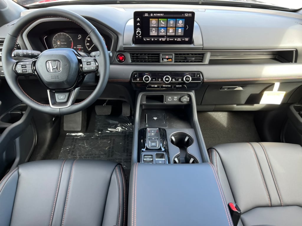 Crystal Black Pearl 2025 Honda Pilot TrailSport AWD 10-Speed Automatic 3.5L V6 DOHC 24V 3rd Row Seats, 4-Wheel Disc Brakes, 4.167 Axle Ratio, 9 Speakers, ABS Brakes, Adaptive Cruise Control: Adaptive Cruise Control (ACC) with Low-Speed Follow, Air Conditioning, Alloy wheels, AM/FM Radio, Available Sirius XM Radio, Apple CarPlay/Android Auto, Auto High-beam Headlights, Auto-dimming Rear-View mirror, Automatic temperature control, Blind Spot Information (BSI) System warning, Brake Assist, Bumpers: body-color, Delay-off headlights, Driver door bin, Driver vanity mirror, Dual front impact airbags, Dual front side impact airbags, Dual-Climate Control, Durable Synthetic Leather Seat Trim, Electronic Stability Control, Emergency communication system: HondaLink Assist, Four wheel independent suspension, Front anti-roll bar, Front Bucket Seats, Front Center Armrest, Front Fog Lights, Front reading lights, Fully Automatic Headlights, Garage door transmitter: HomeLink, Heated Front Bucket Seats, Heated Front Seats, Heated Sideview Mirrors, Illuminated Entry, Knee airbag, Lane departure: Lane Keeping Assist System (LKAS) active, Low tire pressure warning, Memory seat, Occupant sensing airbag, Outside Temperature Display, Overhead airbag, Overhead Console, Panic Alarm, Passenger door bin, Passenger vanity mirror, Power Adjusting Driver Seat, Power Liftgate, Power Moonroof, Power passenger seat, Power Sideview Mirrors, Power Steering, Power Windows, Radio data system, Radio: 245-Watt Audio System, Rear air conditioning, Rear anti-roll bar, Rear reading lights, Rear Spoiler, Rear Window Wiper, Rear-View Camera, Rear/Front Window Defroster, Reclining 3rd row seat, Remote Keyless Entry, Security System, SiriusXM, Speed Control, Speed-Sensing Steering, Speed-Sensitive Wipers, Split Folding Rear Seat, Steering Wheel Mounted Controls, Tachometer, Telescoping steering wheel, Tilt steering wheel, Traction Control, Trip computer, Turn signal indicator mirrors, Variably intermittent wipers, Wheels: 18" Shark Gray w/Black Lug Nuts.