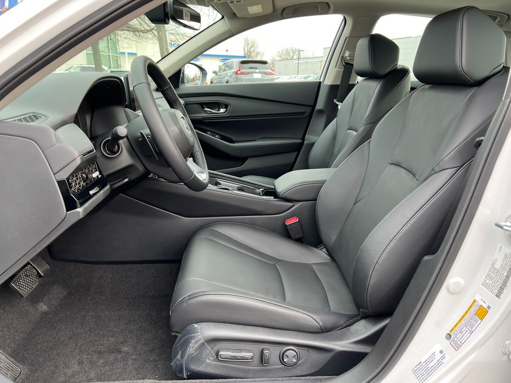 Platinum White Pearl 2026 Honda Accord Hybrid Touring FWD CVT 2.0L I4 DOHC 16V 12 Speakers, 4-Wheel Disc Brakes, ABS Brakes, Adaptive Cruise Control: Adaptive Cruise Control (ACC) with Low-Speed Follow, Air Conditioning, Alloy wheels, AM/FM Radio, Apple CarPlay/Android Auto, Auto High-beam Headlights, Auto-dimming Rear-View mirror, Automatic temperature control, Blind Spot Information (BSI) System warning, Bose Premium Sound System, Brake Assist, Bumpers: body-color, Compass, Delay-off headlights, Driver door bin, Driver vanity mirror, Dual front impact airbags, Dual front side impact airbags, Dual-Climate Control, Electronic Stability Control, Emergency communication system: HondaLink, Four wheel independent suspension, Front anti-roll bar, Front Bucket Seats, Front Center Armrest, Front reading lights, Fully Automatic Headlights, Heads-Up Display, Heated and Ventilated Front Bucket Seats, Heated Front Seats, Heated Rear Seats, Heated Sideview Mirrors, Heated Steering Wheel, Illuminated Entry, Knee airbag, Lane departure: Lane Keeping Assist System (LKAS) active, Leather Shift Knob, Leather steering wheel, Leather-Trimmed Seat Trim, Low tire pressure warning, Memory seat, Navigation System, Occupant sensing airbag, Outside Temperature Display, Overhead airbag, Overhead Console, Panic Alarm, Passenger door bin, Passenger vanity mirror, Power Adjusting Driver Seat, Power Moonroof, Power passenger seat, Power Sideview Mirrors, Power Steering, Power Windows, Radio data system, Rain Sensing Wipers, Rear anti-roll bar, Rear reading lights, Rear seat center armrest, Rear side impact airbag, Rear-View Camera, Rear/Front Window Defroster, Remote Keyless Entry, Security System, Speed Control, Speed-Sensing Steering, Speed-Sensitive Wipers, Split Folding Rear Seat, Steering Wheel Mounted Controls, Telescoping steering wheel, Tilt steering wheel, Traction Control, Trip computer, Turn signal indicator mirrors, Variably intermittent wipers, Ventilated front seats, Wheels: 19" x 8.5J Berlina Black.