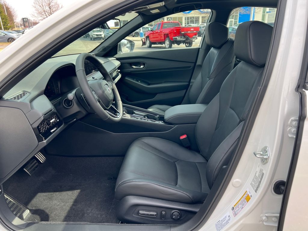 Platinum White Pearl 2026 Honda Accord Hybrid Sport-L FWD CVT 2.0L I4 DOHC 16V 4-Wheel Disc Brakes, 8 Speakers, ABS Brakes, Adaptive Cruise Control: Adaptive Cruise Control (ACC) with Low-Speed Follow, Air Conditioning, Alloy wheels, AM/FM Radio, Apple CarPlay/Android Auto, Auto High-beam Headlights, Automatic temperature control, Blind Spot Information (BSI) System warning, Brake Assist, Bumpers: body-color, Compass, Delay-off headlights, Driver door bin, Driver vanity mirror, Dual front impact airbags, Dual front side impact airbags, Dual-Climate Control, Electronic Stability Control, Emergency communication system: HondaLink, Four wheel independent suspension, Front anti-roll bar, Front Bucket Seats, Front Center Armrest, Front reading lights, Fully Automatic Headlights, Heated Front Bucket Seats, Heated Front Seats, Illuminated Entry, Knee airbag, Lane departure: Lane Keeping Assist System (LKAS) active, Leather Shift Knob, Leather steering wheel, Leather-Trimmed Seat Trim, Low tire pressure warning, Memory seat, Occupant sensing airbag, Outside Temperature Display, Overhead airbag, Overhead Console, Panic Alarm, Passenger door bin, Passenger vanity mirror, Power Adjusting Driver Seat, Power Moonroof, Power passenger seat, Power Sideview Mirrors, Power Steering, Power Windows, Radio data system, Radio: 180-Watt Audio System, Rear anti-roll bar, Rear reading lights, Rear seat center armrest, Rear side impact airbag, Rear Spoiler, Rear-View Camera, Rear/Front Window Defroster, Remote Keyless Entry, Security System, Speed Control, Speed-Sensing Steering, Speed-Sensitive Wipers, Split Folding Rear Seat, Steering Wheel Mounted Controls, Telescoping steering wheel, Tilt steering wheel, Traction Control, Trip computer, Variably intermittent wipers, Wheels: 19" x 8.5J Matte Berlina Black.
