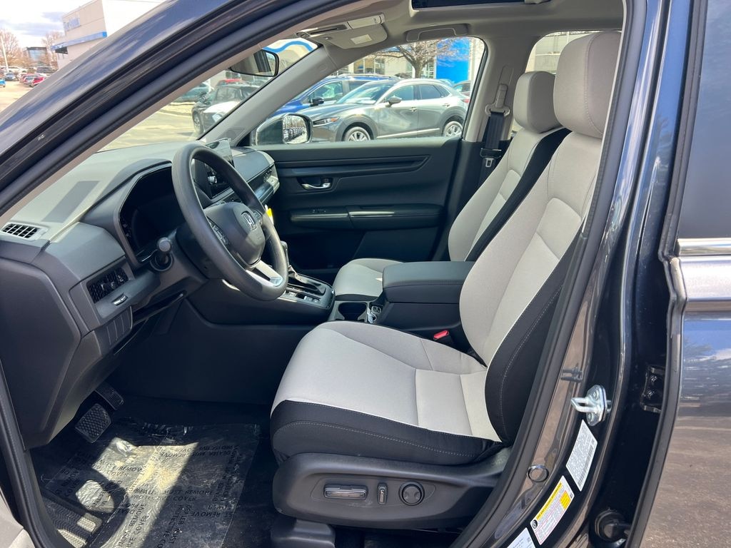 Meteorite Gray Metallic 2026 Honda CR-V EX AWD CVT 1.5L I4 DOHC 16V 4-Wheel Disc Brakes, 6 Speakers, ABS Brakes, Adaptive Cruise Control: Adaptive Cruise Control (ACC) with Low-Speed Follow, Air Conditioning, Alloy wheels, AM/FM Radio, Apple CarPlay/Android Auto, Auto High-beam Headlights, Automatic temperature control, Blind Spot Information (BSI) System warning, Brake Assist, Bumpers: body-color, Cloth Seat Trim, Compass, Delay-off headlights, Driver door bin, Driver vanity mirror, Dual front impact airbags, Dual front side impact airbags, Dual-Climate Control, Electronic Stability Control, Four wheel independent suspension, Front anti-roll bar, Front Bucket Seats, Front Center Armrest, Front reading lights, Fully Automatic Headlights, Heated Front Bucket Seats, Heated Front Seats, Heated Sideview Mirrors, Illuminated Entry, Knee airbag, Low tire pressure warning, Occupant sensing airbag, Outside Temperature Display, Overhead airbag, Overhead Console, Panic Alarm, Passenger door bin, Passenger vanity mirror, Power Adjusting Driver Seat, Power Moonroof, Power Sideview Mirrors, Power Steering, Power Windows, Radio data system, Radio: 240-Watt AM/FM Audio System, Rear anti-roll bar, Rear reading lights, Rear seat center armrest, Rear side impact airbag, Rear Spoiler, Rear Window Wiper, Rear-View Camera, Rear/Front Window Defroster, Remote Keyless Entry, Security System, Speed Control, Speed-Sensing Steering, Speed-Sensitive Wipers, Split Folding Rear Seat, Steering Wheel Mounted Controls, Tachometer, Telescoping steering wheel, Tilt steering wheel, Traction Control, Trip computer, Turn signal indicator mirrors, Variably intermittent wipers, Wheels: 18" Sparkle Silver.