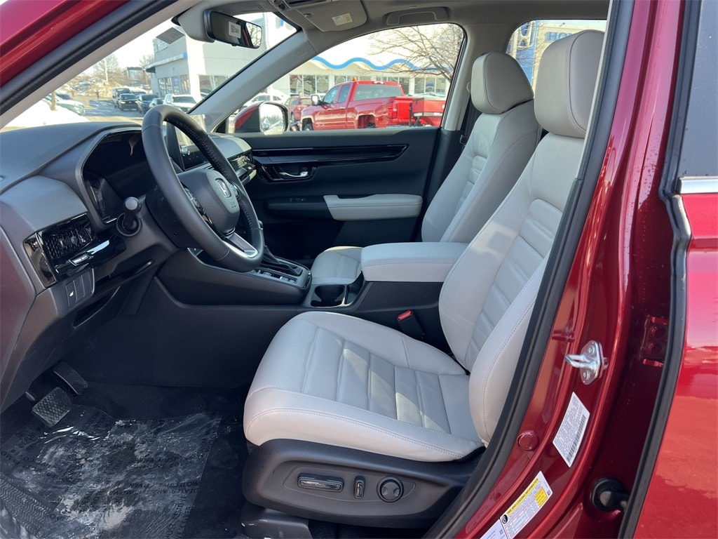 Radiant Red Metallic 2026 Honda CR-V EX-L AWD CVT 1.5L I4 DOHC 16V 4-Wheel Disc Brakes, 8 Speakers, ABS Brakes, Adaptive Cruise Control: Adaptive Cruise Control (ACC) with Low-Speed Follow, Air Conditioning, Alloy wheels, AM/FM Radio, Apple CarPlay/Android Auto, Auto High-beam Headlights, Auto-dimming Rear-View mirror, Automatic temperature control, Blind Spot Information (BSI) System warning, Brake Assist, Bumpers: body-color, Compass, Delay-off headlights, Driver door bin, Driver vanity mirror, Dual front impact airbags, Dual front side impact airbags, Dual-Climate Control, Electronic Stability Control, Four wheel independent suspension, Front anti-roll bar, Front Bucket Seats, Front Center Armrest, Front reading lights, Fully Automatic Headlights, Heated Front Bucket Seats, Heated Front Seats, Heated Sideview Mirrors, Illuminated Entry, Knee airbag, Leather Seat Trim, Leather Shift Knob, Leather steering wheel, Low tire pressure warning, Memory seat, Occupant sensing airbag, Outside Temperature Display, Overhead airbag, Overhead Console, Panic Alarm, Passenger door bin, Passenger vanity mirror, Power Adjusting Driver Seat, Power Liftgate, Power Moonroof, Power passenger seat, Power Sideview Mirrors, Power Steering, Power Windows, Radio data system, Radio: 320-Watt AM/FM Audio System, Rear anti-roll bar, Rear reading lights, Rear seat center armrest, Rear side impact airbag, Rear Spoiler, Rear Window Wiper, Rear-View Camera, Rear/Front Window Defroster, Remote Keyless Entry, Security System, Speed Control, Speed-Sensing Steering, Speed-Sensitive Wipers, Split Folding Rear Seat, Steering Wheel Mounted Controls, Tachometer, Telescoping steering wheel, Tilt steering wheel, Traction Control, Trip computer, Turn signal indicator mirrors, Variably intermittent wipers, Wheels: 18" Shark Grey.