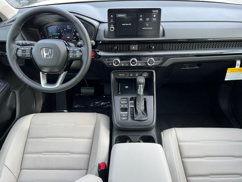 Platinum White Pearl 2026 Honda CR-V EX-L AWD CVT 1.5L I4 DOHC 16V 4-Wheel Disc Brakes, 8 Speakers, ABS Brakes, Adaptive Cruise Control: Adaptive Cruise Control (ACC) with Low-Speed Follow, Air Conditioning, Alloy wheels, AM/FM Radio, Apple CarPlay/Android Auto, Auto High-beam Headlights, Auto-dimming Rear-View mirror, Automatic temperature control, Blind Spot Information (BSI) System warning, Brake Assist, Bumpers: body-color, Compass, Delay-off headlights, Driver door bin, Driver vanity mirror, Dual front impact airbags, Dual front side impact airbags, Dual-Climate Control, Electronic Stability Control, Four wheel independent suspension, Front anti-roll bar, Front Bucket Seats, Front Center Armrest, Front reading lights, Fully Automatic Headlights, Heated Front Bucket Seats, Heated Front Seats, Heated Sideview Mirrors, Illuminated Entry, Knee airbag, Leather Seat Trim, Leather Shift Knob, Leather steering wheel, Low tire pressure warning, Memory seat, Occupant sensing airbag, Outside Temperature Display, Overhead airbag, Overhead Console, Panic Alarm, Passenger door bin, Passenger vanity mirror, Power Adjusting Driver Seat, Power Liftgate, Power Moonroof, Power passenger seat, Power Sideview Mirrors, Power Steering, Power Windows, Radio data system, Radio: 320-Watt AM/FM Audio System, Rear anti-roll bar, Rear reading lights, Rear seat center armrest, Rear side impact airbag, Rear Spoiler, Rear Window Wiper, Rear-View Camera, Rear/Front Window Defroster, Remote Keyless Entry, Security System, Speed Control, Speed-Sensing Steering, Speed-Sensitive Wipers, Split Folding Rear Seat, Steering Wheel Mounted Controls, Tachometer, Telescoping steering wheel, Tilt steering wheel, Traction Control, Trip computer, Turn signal indicator mirrors, Variably intermittent wipers, Wheels: 18" Shark Grey.