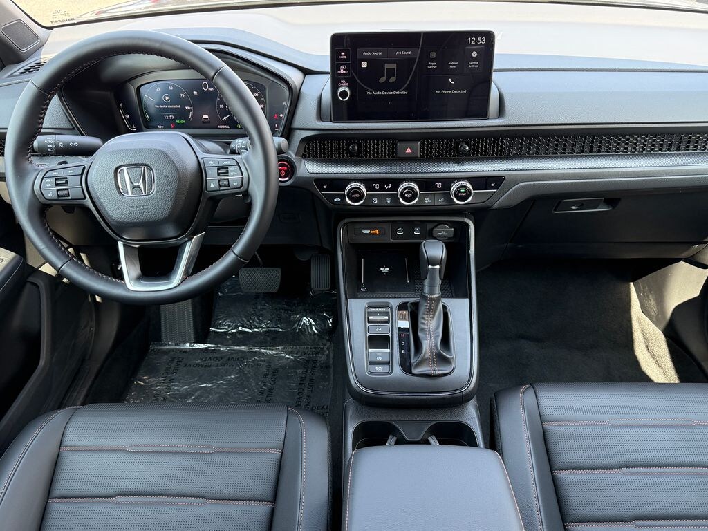 Meteorite Gray Metallic 2026 Honda CR-V Hybrid Sport-L AWD eCVT 2.0L I4 DOHC 16V 4-Wheel Disc Brakes, 8 Speakers, ABS Brakes, Adaptive Cruise Control: Adaptive Cruise Control (ACC) with Low-Speed Follow, Air Conditioning, Alloy wheels, AM/FM Radio, Apple CarPlay/Android Auto, Auto High-beam Headlights, Auto-dimming Rear-View mirror, Automatic temperature control, Blind Spot Information (BSI) System warning, Brake Assist, Bumpers: body-color, Compass, Delay-off headlights, Driver door bin, Driver vanity mirror, Dual front impact airbags, Dual front side impact airbags, Dual-Climate Control, Electronic Stability Control, Four wheel independent suspension, Front anti-roll bar, Front Bucket Seats, Front Center Armrest, Front reading lights, Fully Automatic Headlights, Heated Front Bucket Seats, Heated Front Seats, Heated Sideview Mirrors, Illuminated Entry, Knee airbag, Leather Seat Trim, Leather Shift Knob, Leather steering wheel, Low tire pressure warning, Memory seat, Occupant sensing airbag, Outside Temperature Display, Overhead airbag, Overhead Console, Panic Alarm, Passenger door bin, Passenger vanity mirror, Power Adjusting Driver Seat, Power Liftgate, Power Moonroof, Power passenger seat, Power Sideview Mirrors, Power Steering, Power Windows, Radio data system, Radio: 320-Watt AM/FM Audio System, Rear anti-roll bar, Rear reading lights, Rear seat center armrest, Rear side impact airbag, Rear Spoiler, Rear Window Wiper, Rear-View Camera, Rear/Front Window Defroster, Remote Keyless Entry, Security System, Speed Control, Speed-Sensing Steering, Speed-Sensitive Wipers, Split Folding Rear Seat, Steering Wheel Mounted Controls, Telescoping steering wheel, Tilt steering wheel, Traction Control, Trip computer, Turn signal indicator mirrors, Variably intermittent wipers, Wheels: 18" Berlina Black.