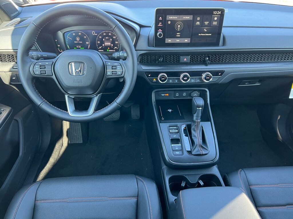 Radiant Red Metallic 2026 Honda CR-V Hybrid Sport-L AWD eCVT 2.0L I4 DOHC 16V 4-Wheel Disc Brakes, 8 Speakers, ABS Brakes, Adaptive Cruise Control: Adaptive Cruise Control (ACC) with Low-Speed Follow, Air Conditioning, Alloy wheels, AM/FM Radio, Apple CarPlay/Android Auto, Auto High-beam Headlights, Auto-dimming Rear-View mirror, Automatic temperature control, Blind Spot Information (BSI) System warning, Brake Assist, Bumpers: body-color, Compass, Delay-off headlights, Driver door bin, Driver vanity mirror, Dual front impact airbags, Dual front side impact airbags, Dual-Climate Control, Electronic Stability Control, Four wheel independent suspension, Front anti-roll bar, Front Bucket Seats, Front Center Armrest, Front reading lights, Fully Automatic Headlights, Heated Front Bucket Seats, Heated Front Seats, Heated Sideview Mirrors, Illuminated Entry, Knee airbag, Leather Seat Trim, Leather Shift Knob, Leather steering wheel, Low tire pressure warning, Memory seat, Occupant sensing airbag, Outside Temperature Display, Overhead airbag, Overhead Console, Panic Alarm, Passenger door bin, Passenger vanity mirror, Power Adjusting Driver Seat, Power Liftgate, Power Moonroof, Power passenger seat, Power Sideview Mirrors, Power Steering, Power Windows, Radio data system, Radio: 320-Watt AM/FM Audio System, Rear anti-roll bar, Rear reading lights, Rear seat center armrest, Rear side impact airbag, Rear Spoiler, Rear Window Wiper, Rear-View Camera, Rear/Front Window Defroster, Remote Keyless Entry, Security System, Speed Control, Speed-Sensing Steering, Speed-Sensitive Wipers, Split Folding Rear Seat, Steering Wheel Mounted Controls, Telescoping steering wheel, Tilt steering wheel, Traction Control, Trip computer, Turn signal indicator mirrors, Variably intermittent wipers, Wheels: 18" Berlina Black.