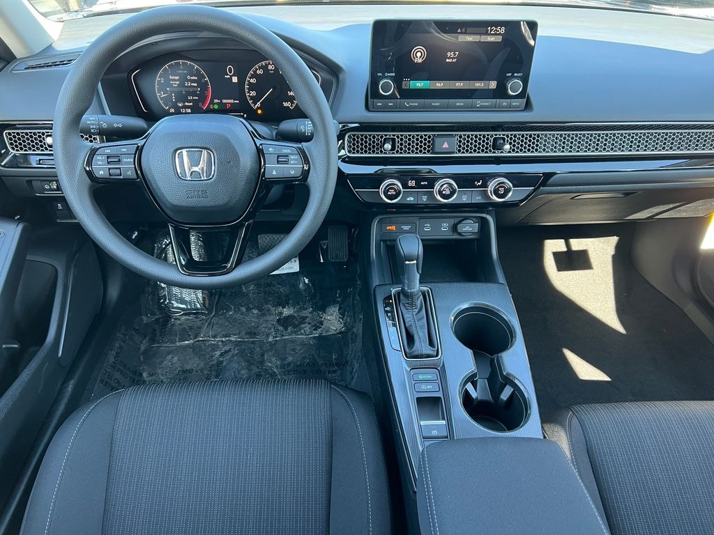 Meteorite Gray Metallic 2026 Honda Civic LX FWD CVT 2.0L I4 DOHC 16V 4 Speakers, 4-Wheel Disc Brakes, ABS Brakes, Adaptive Cruise Control: Adaptive Cruise Control (ACC) with Low-Speed Follow, Air Conditioning, AM/FM Radio, Apple CarPlay/Android Auto, Auto High-beam Headlights, Automatic temperature control, Brake Assist, Bumpers: body-color, Cloth Seating Surfaces, Delay-off headlights, Driver door bin, Driver vanity mirror, Dual front impact airbags, Dual front side impact airbags, Electronic Stability Control, Emergency communication system: HondaLink, Four wheel independent suspension, Front anti-roll bar, Front Bucket Seats, Front Center Armrest, Front reading lights, Fully Automatic Headlights, Illuminated Entry, Knee airbag, Low tire pressure warning, Occupant sensing airbag, Outside Temperature Display, Overhead airbag, Panic Alarm, Passenger door bin, Passenger vanity mirror, Power Sideview Mirrors, Power Steering, Power Windows, Radio data system, Radio: 160-Watt Audio System, Rear anti-roll bar, Rear side impact airbag, Rear-View Camera, Rear/Front Window Defroster, Remote Keyless Entry, Security System, Speed Control, Speed-Sensing Steering, Steering Wheel Mounted Controls, Tachometer, Telescoping steering wheel, Tilt steering wheel, Traction Control, Trip computer, Wheels: 16" with Full Covers.