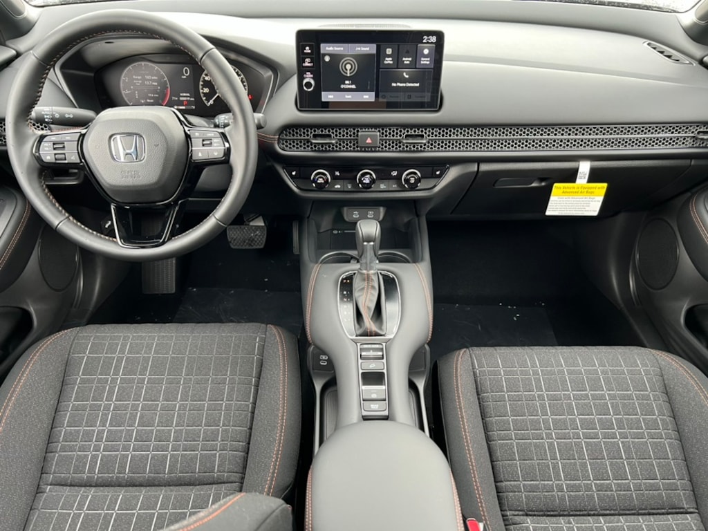 Crystal Black Pearl 2026 Honda HR-V Sport AWD CVT 2.0L I4 DOHC 16V i-VTEC 4-Wheel Disc Brakes, 6 Speakers, ABS Brakes, Adaptive Cruise Control: Adaptive Cruise Control (ACC) with Low-Speed Follow, Air Conditioning, Alloy wheels, AM/FM Radio, Apple CarPlay/Android Auto, Auto High-beam Headlights, Automatic temperature control, Blind Spot Information (BSI) System warning, Brake Assist, Bumpers: body-color, Cloth Seat Trim, Compass, Delay-off headlights, Driver door bin, Driver vanity mirror, Dual front impact airbags, Dual front side impact airbags, Electronic Stability Control, Four wheel independent suspension, Front anti-roll bar, Front Bucket Seats, Front Center Armrest, Front reading lights, Fully Automatic Headlights, Heated Front Bucket Seats, Heated Front Seats, Heated Sideview Mirrors, Illuminated Entry, Knee airbag, Low tire pressure warning, Occupant sensing airbag, Outside Temperature Display, Overhead airbag, Panic Alarm, Passenger door bin, Passenger vanity mirror, Power Sideview Mirrors, Power Steering, Power Windows, Radio data system, Radio: 180-Watt Audio System w/6 Speakers, Rear anti-roll bar, Rear reading lights, Rear side impact airbag, Rear Spoiler, Rear Window Wiper, Rear-View Camera, Rear/Front Window Defroster, Remote Keyless Entry, Security System, Speed Control, Speed-Sensing Steering, Split Folding Rear Seat, Steering Wheel Mounted Controls, Tachometer, Telescoping steering wheel, Tilt steering wheel, Traction Control, Trip computer, Turn signal indicator mirrors, Variably intermittent wipers, Wheels: 18" Gloss Black Alloy.