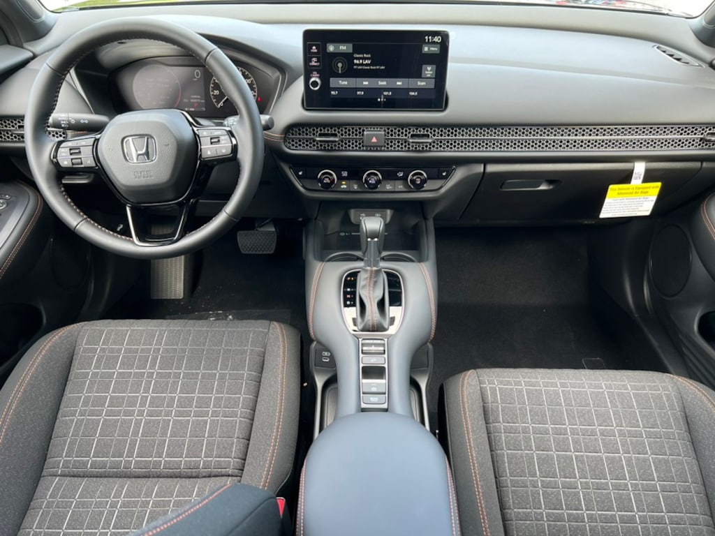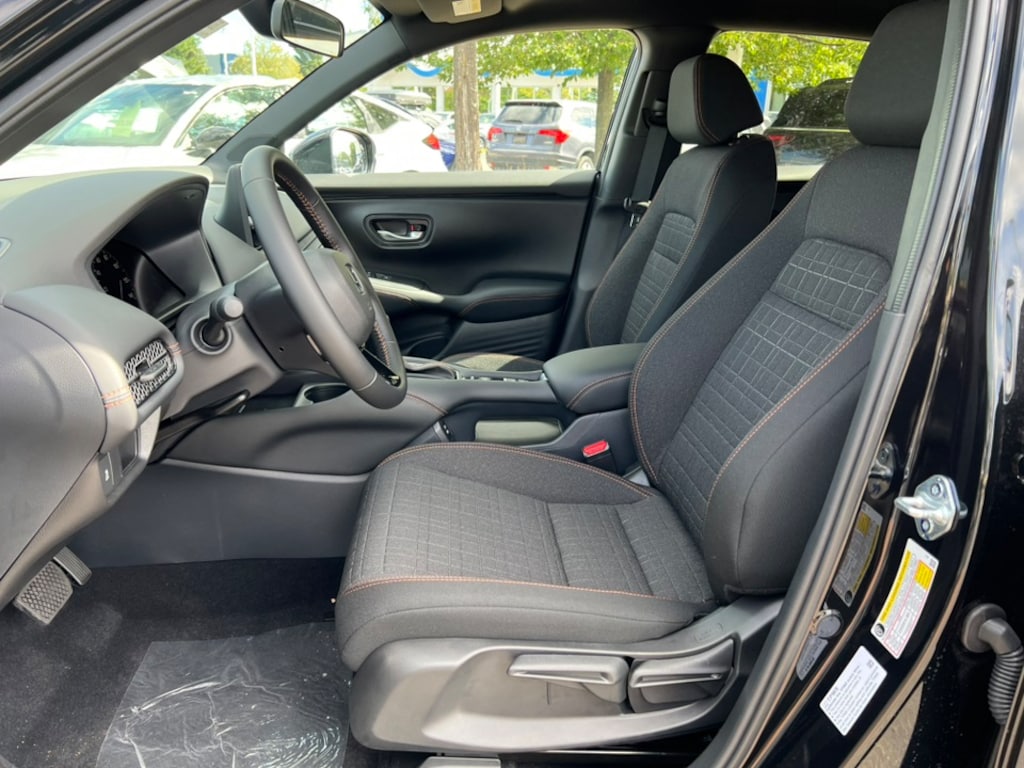Crystal Black Pearl 2026 Honda HR-V Sport AWD CVT 2.0L I4 DOHC 16V i-VTEC 4-Wheel Disc Brakes, 6 Speakers, ABS Brakes, Adaptive Cruise Control: Adaptive Cruise Control (ACC) with Low-Speed Follow, Air Conditioning, Alloy wheels, AM/FM Radio, Apple CarPlay/Android Auto, Auto High-beam Headlights, Automatic temperature control, Blind Spot Information (BSI) System warning, Brake Assist, Bumpers: body-color, Cloth Seat Trim, Compass, Delay-off headlights, Driver door bin, Driver vanity mirror, Dual front impact airbags, Dual front side impact airbags, Electronic Stability Control, Four wheel independent suspension, Front anti-roll bar, Front Bucket Seats, Front Center Armrest, Front reading lights, Fully Automatic Headlights, Heated Front Bucket Seats, Heated Front Seats, Heated Sideview Mirrors, Illuminated Entry, Knee airbag, Low tire pressure warning, Occupant sensing airbag, Outside Temperature Display, Overhead airbag, Panic Alarm, Passenger door bin, Passenger vanity mirror, Power Sideview Mirrors, Power Steering, Power Windows, Radio data system, Radio: 180-Watt Audio System w/6 Speakers, Rear anti-roll bar, Rear reading lights, Rear side impact airbag, Rear Spoiler, Rear Window Wiper, Rear-View Camera, Rear/Front Window Defroster, Remote Keyless Entry, Security System, Speed Control, Speed-Sensing Steering, Split Folding Rear Seat, Steering Wheel Mounted Controls, Tachometer, Telescoping steering wheel, Tilt steering wheel, Traction Control, Trip computer, Turn signal indicator mirrors, Variably intermittent wipers, Wheels: 18" Gloss Black Alloy.
