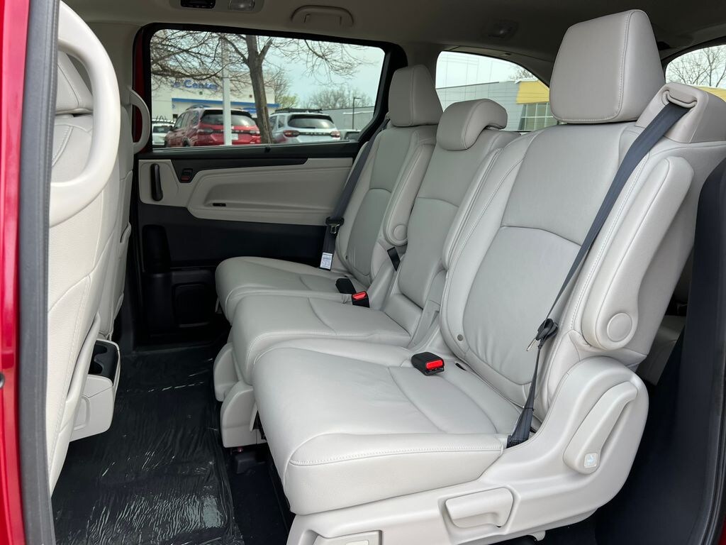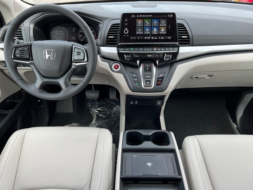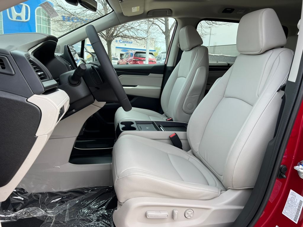 Radiant Red Metallic II 2026 Honda Odyssey EX-L FWD 10-Speed Automatic 3.5L V6 SOHC i-VTEC 24V 18" Machine-Finished Alloy Wheels, 3rd Row Seats, 4-Wheel Disc Brakes, 7 Speakers, ABS Brakes, Adaptive Cruise Control: Adaptive Cruise Control (ACC) with Low-Speed Follow, Air Conditioning, Alloy wheels, AM/FM Radio, Available Sirius XM Radio, Anti-whiplash front head restraints, Apple CarPlay/Android Auto, Auto High-beam Headlights, Auto-dimming Rear-View mirror, Automatic temperature control, Blind Spot Information (BSI) System warning, Brake Assist, Bumpers: body-color, Delay-off headlights, Driver door bin, Driver vanity mirror, Driver's Seat Mounted Armrest, Dual front impact airbags, Dual front side impact airbags, Dual-Climate Control, Electronic Stability Control, Four wheel independent suspension, Front anti-roll bar, Front Bucket Seats, Front Fog Lights, Front reading lights, Fully Automatic Headlights, Garage door transmitter: HomeLink, Heated Front Bucket Seats, Heated Front Seats, Heated Sideview Mirrors, Illuminated Entry, Knee airbag, Lane departure: Lane Keeping Assist System (LKAS) active, Leather steering wheel, Leather-Trimmed Seats, Low tire pressure warning, Memory seat, Occupant sensing airbag, Outside Temperature Display, Overhead airbag, Overhead Console, Panic Alarm, Passenger door bin, Passenger seat mounted armrest, Passenger vanity mirror, Power Adjusting Driver Seat, Power Liftgate, Power Moonroof, Power passenger seat, Power Sideview Mirrors, Power Steering, Power Windows, Radio data system, Radio: 160-Watt AM/FM/HD/SiriusXM Audio System, Rear air conditioning, Rear anti-roll bar, Rear reading lights, Rear seat center armrest, Rear Spoiler, Rear Window Wiper, Rear-View Camera, Rear/Front Window Defroster, Reclining 3rd row seat, Remote Keyless Entry, Security System, Speed Control, Speed-Sensing Steering, Speed-Sensitive Wipers, Split Folding Rear Seat, Steering Wheel Mounted Controls, Tachometer, Telescoping steering wheel, Tilt steering wheel, Traction Control, Trip computer, Turn signal indicator mirrors, Variably intermittent wipers.