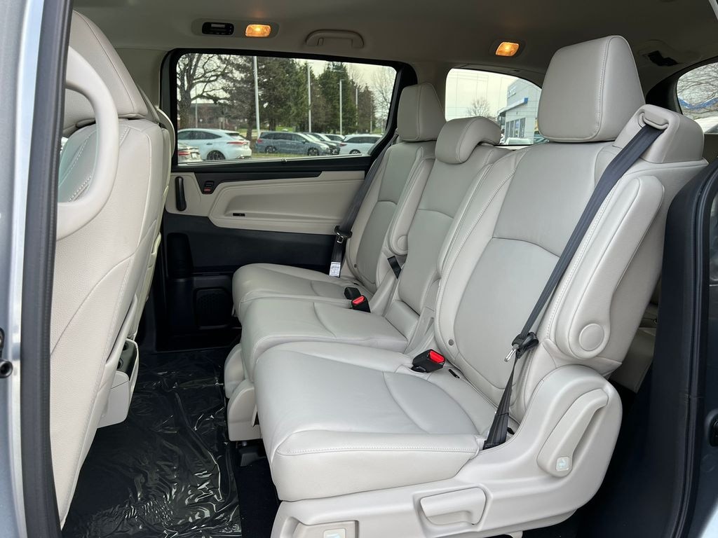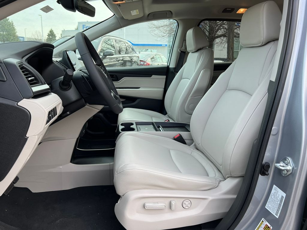 Solar Silver Metallic 2026 Honda Odyssey EX-L FWD 10-Speed Automatic 3.5L V6 SOHC i-VTEC 24V 18" Machine-Finished Alloy Wheels, 3rd Row Seats, 4-Wheel Disc Brakes, 7 Speakers, ABS Brakes, Adaptive Cruise Control: Adaptive Cruise Control (ACC) with Low-Speed Follow, Air Conditioning, Alloy wheels, AM/FM Radio, Available Sirius XM Radio, Anti-whiplash front head restraints, Apple CarPlay/Android Auto, Auto High-beam Headlights, Auto-dimming Rear-View mirror, Automatic temperature control, Blind Spot Information (BSI) System warning, Brake Assist, Bumpers: body-color, Delay-off headlights, Driver door bin, Driver vanity mirror, Driver's Seat Mounted Armrest, Dual front impact airbags, Dual front side impact airbags, Dual-Climate Control, Electronic Stability Control, Four wheel independent suspension, Front anti-roll bar, Front Bucket Seats, Front Fog Lights, Front reading lights, Fully Automatic Headlights, Garage door transmitter: HomeLink, Heated Front Bucket Seats, Heated Front Seats, Heated Sideview Mirrors, Illuminated Entry, Knee airbag, Lane departure: Lane Keeping Assist System (LKAS) active, Leather steering wheel, Leather-Trimmed Seats, Low tire pressure warning, Memory seat, Occupant sensing airbag, Outside Temperature Display, Overhead airbag, Overhead Console, Panic Alarm, Passenger door bin, Passenger seat mounted armrest, Passenger vanity mirror, Power Adjusting Driver Seat, Power Liftgate, Power Moonroof, Power passenger seat, Power Sideview Mirrors, Power Steering, Power Windows, Radio data system, Radio: 160-Watt AM/FM/HD/SiriusXM Audio System, Rear air conditioning, Rear anti-roll bar, Rear reading lights, Rear seat center armrest, Rear Spoiler, Rear Window Wiper, Rear-View Camera, Rear/Front Window Defroster, Reclining 3rd row seat, Remote Keyless Entry, Security System, Speed Control, Speed-Sensing Steering, Speed-Sensitive Wipers, Split Folding Rear Seat, Steering Wheel Mounted Controls, Tachometer, Telescoping steering wheel, Tilt steering wheel, Traction Control, Trip computer, Turn signal indicator mirrors, Variably intermittent wipers.