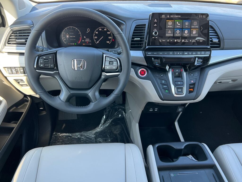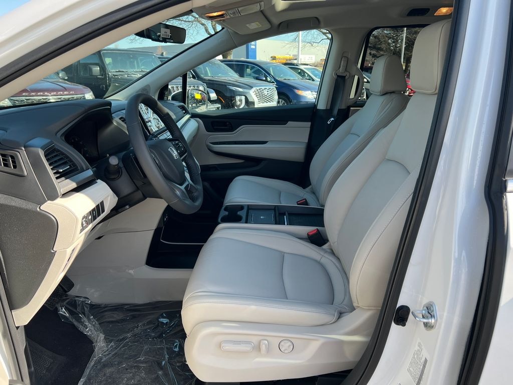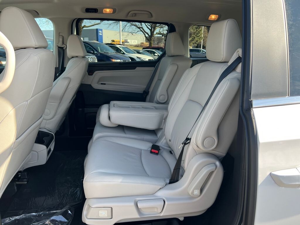 Platinum White Pearl 2026 Honda Odyssey EX-L FWD 10-Speed Automatic 3.5L V6 SOHC i-VTEC 24V 18" Machine-Finished Alloy Wheels, 3rd Row Seats, 4-Wheel Disc Brakes, 7 Speakers, ABS Brakes, Adaptive Cruise Control: Adaptive Cruise Control (ACC) with Low-Speed Follow, Air Conditioning, Alloy wheels, AM/FM Radio, Available Sirius XM Radio, Anti-whiplash front head restraints, Apple CarPlay/Android Auto, Auto High-beam Headlights, Auto-dimming Rear-View mirror, Automatic temperature control, Blind Spot Information (BSI) System warning, Brake Assist, Bumpers: body-color, Delay-off headlights, Driver door bin, Driver vanity mirror, Driver's Seat Mounted Armrest, Dual front impact airbags, Dual front side impact airbags, Dual-Climate Control, Electronic Stability Control, Four wheel independent suspension, Front anti-roll bar, Front Bucket Seats, Front Fog Lights, Front reading lights, Fully Automatic Headlights, Garage door transmitter: HomeLink, Heated Front Bucket Seats, Heated Front Seats, Heated Sideview Mirrors, Illuminated Entry, Knee airbag, Lane departure: Lane Keeping Assist System (LKAS) active, Leather steering wheel, Leather-Trimmed Seats, Low tire pressure warning, Memory seat, Occupant sensing airbag, Outside Temperature Display, Overhead airbag, Overhead Console, Panic Alarm, Passenger door bin, Passenger seat mounted armrest, Passenger vanity mirror, Power Adjusting Driver Seat, Power Liftgate, Power Moonroof, Power passenger seat, Power Sideview Mirrors, Power Steering, Power Windows, Radio data system, Radio: 160-Watt AM/FM/HD/SiriusXM Audio System, Rear air conditioning, Rear anti-roll bar, Rear reading lights, Rear seat center armrest, Rear Spoiler, Rear Window Wiper, Rear-View Camera, Rear/Front Window Defroster, Reclining 3rd row seat, Remote Keyless Entry, Security System, Speed Control, Speed-Sensing Steering, Speed-Sensitive Wipers, Split Folding Rear Seat, Steering Wheel Mounted Controls, Tachometer, Telescoping steering wheel, Tilt steering wheel, Traction Control, Trip computer, Turn signal indicator mirrors, Variably intermittent wipers.