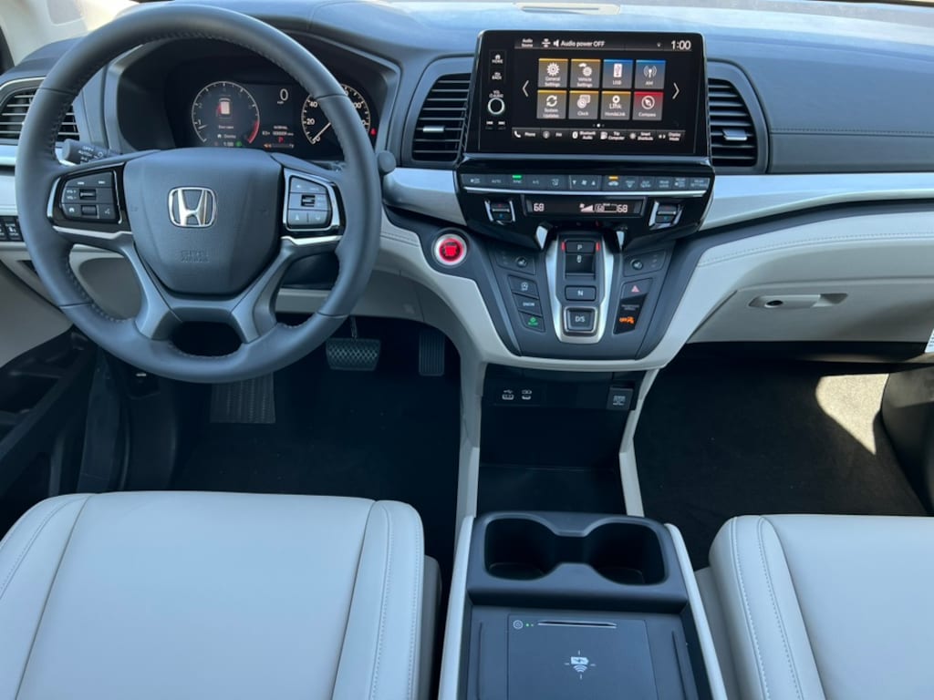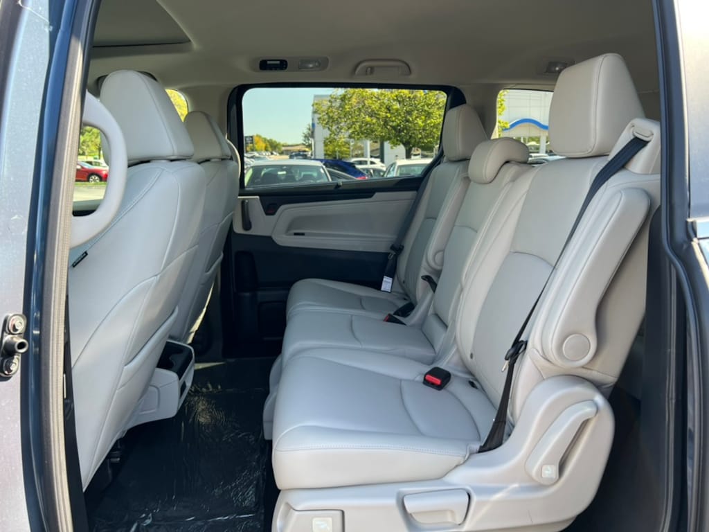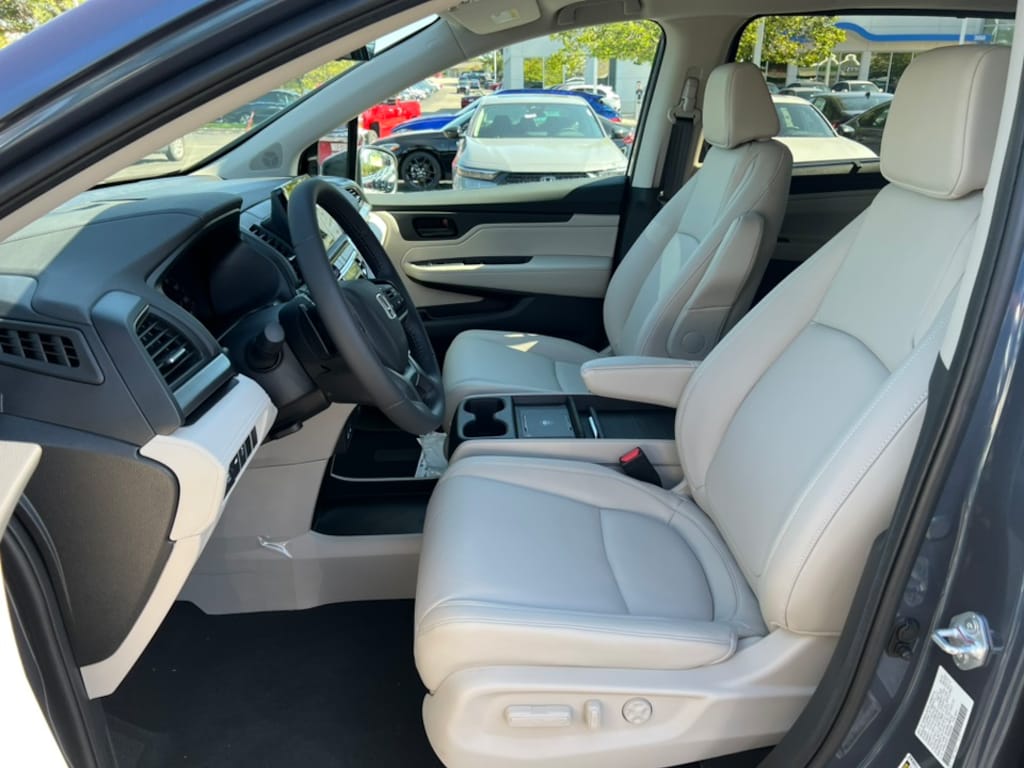 Smoke Blue Pearl 2026 Honda Odyssey EX-L FWD 10-Speed Automatic 3.5L V6 SOHC i-VTEC 24V 18" Machine-Finished Alloy Wheels, 3rd Row Seats, 4-Wheel Disc Brakes, 7 Speakers, ABS Brakes, Adaptive Cruise Control: Adaptive Cruise Control (ACC) with Low-Speed Follow, Air Conditioning, Alloy wheels, AM/FM Radio, Available Sirius XM Radio, Anti-whiplash front head restraints, Apple CarPlay/Android Auto, Auto High-beam Headlights, Auto-dimming Rear-View mirror, Automatic temperature control, Blind Spot Information (BSI) System warning, Brake Assist, Bumpers: body-color, Delay-off headlights, Driver door bin, Driver vanity mirror, Driver's Seat Mounted Armrest, Dual front impact airbags, Dual front side impact airbags, Dual-Climate Control, Electronic Stability Control, Four wheel independent suspension, Front anti-roll bar, Front Bucket Seats, Front Fog Lights, Front reading lights, Fully Automatic Headlights, Garage door transmitter: HomeLink, Heated Front Bucket Seats, Heated Front Seats, Heated Sideview Mirrors, Illuminated Entry, Knee airbag, Lane departure: Lane Keeping Assist System (LKAS) active, Leather steering wheel, Leather-Trimmed Seats, Low tire pressure warning, Memory seat, Occupant sensing airbag, Outside Temperature Display, Overhead airbag, Overhead Console, Panic Alarm, Passenger door bin, Passenger seat mounted armrest, Passenger vanity mirror, Power Adjusting Driver Seat, Power Liftgate, Power Moonroof, Power passenger seat, Power Sideview Mirrors, Power Steering, Power Windows, Radio data system, Radio: 160-Watt AM/FM/HD/SiriusXM Audio System, Rear air conditioning, Rear anti-roll bar, Rear reading lights, Rear seat center armrest, Rear Spoiler, Rear Window Wiper, Rear-View Camera, Rear/Front Window Defroster, Reclining 3rd row seat, Remote Keyless Entry, Security System, Speed Control, Speed-Sensing Steering, Speed-Sensitive Wipers, Split Folding Rear Seat, Steering Wheel Mounted Controls, Tachometer, Telescoping steering wheel, Tilt steering wheel, Traction Control, Trip computer, Turn signal indicator mirrors, Variably intermittent wipers.