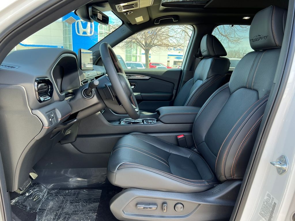 Platinum White Pearl 2026 Honda Passport TrailSport Elite Blackout AWD 10-Speed Automatic 3.5L V6 DOHC 24V 12 Speakers, 4-Wheel Disc Brakes, ABS Brakes, Adaptive Cruise Control: Adaptive Cruise Control (ACC) with Low-Speed Follow, Air Conditioning, Alloy wheels, Apple CarPlay/Android Auto, Auto High-beam Headlights, Auto-dimming door mirrors, Auto-dimming Rear-View mirror, Automatic temperature control, Blind Spot Information (BSI) System warning, Brake Assist, Compass, Delay-off headlights, Driver door bin, Driver vanity mirror, Driver's Seat Mounted Armrest, Dual front impact airbags, Dual front side impact airbags, Dual-Climate Control, Electronic Stability Control, Emergency communication system: HondaLink, Four wheel independent suspension, Front anti-roll bar, Front Bucket Seats, Front Center Armrest, Front Fog Lights, Front reading lights, Fully Automatic Headlights, Heated and Ventilated Front Bucket Seats, Heated Front Seats, Heated Rear Seats, Heated Sideview Mirrors, Heated Steering Wheel, HVAC memory, Illuminated Entry, Knee airbag, Lane departure: Lane Keeping Assist System (LKAS) active, Leather steering wheel, Low tire pressure warning, Memory seat, Navigation system: Google Maps, Occupant sensing airbag, Outside Temperature Display, Overhead airbag, Overhead Console, Panic Alarm, Passenger door bin, Passenger seat mounted armrest, Passenger vanity mirror, Perforated Leather Seat Trim, Power Adjusting Driver Seat, Power Liftgate, Power Moonroof, Power passenger seat, Power Sideview Mirrors, Power Steering, Power Windows, Radio data system, Radio: Bose Premium Sound System with 12 Speakers, Rain Sensing Wipers, Rear air conditioning, Rear anti-roll bar, Rear reading lights, Rear seat center armrest, Rear Spoiler, Rear Window Wiper, Rear-View Camera, Rear/Front Window Defroster, Remote Keyless Entry, Security System, Speed Control, Speed-Sensing Steering, Split Folding Rear Seat, Steering Wheel Mounted Controls, Tachometer, Telescoping steering wheel, Tilt steering wheel, Traction Control, Trip computer, Turn signal indicator mirrors, Variably intermittent wipers, Ventilated front seats, Wheels: 18" HPD Black Alloy.