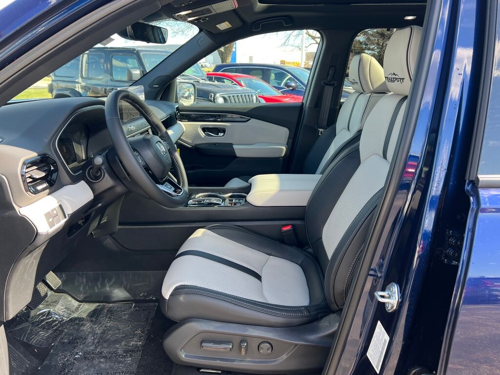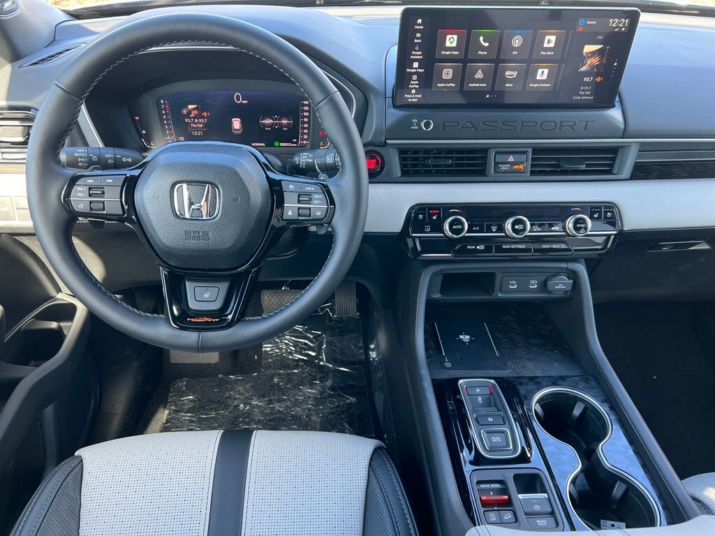 Obsidian Blue Pearl 2026 Honda Passport TrailSport Elite AWD 10-Speed Automatic 3.5L V6 DOHC 24V 12 Speakers, 4-Wheel Disc Brakes, ABS Brakes, Adaptive Cruise Control: Adaptive Cruise Control (ACC) with Low-Speed Follow, Air Conditioning, Alloy wheels, Apple CarPlay/Android Auto, Auto High-beam Headlights, Auto-dimming door mirrors, Auto-dimming Rear-View mirror, Automatic temperature control, Blind Spot Information (BSI) System warning, Brake Assist, Compass, Delay-off headlights, Driver door bin, Driver vanity mirror, Driver's Seat Mounted Armrest, Dual front impact airbags, Dual front side impact airbags, Dual-Climate Control, Electronic Stability Control, Emergency communication system: HondaLink, Four wheel independent suspension, Front anti-roll bar, Front Bucket Seats, Front Center Armrest, Front Fog Lights, Front reading lights, Fully Automatic Headlights, Heated and Ventilated Front Bucket Seats, Heated Front Seats, Heated Rear Seats, Heated Sideview Mirrors, Heated Steering Wheel, HVAC memory, Illuminated Entry, Knee airbag, Lane departure: Lane Keeping Assist System (LKAS) active, Leather steering wheel, Low tire pressure warning, Memory seat, Navigation system: Google Maps, Occupant sensing airbag, Outside Temperature Display, Overhead airbag, Overhead Console, Panic Alarm, Passenger door bin, Passenger seat mounted armrest, Passenger vanity mirror, Perforated Leather Seat Trim, Power Adjusting Driver Seat, Power Liftgate, Power Moonroof, Power passenger seat, Power Sideview Mirrors, Power Steering, Power Windows, Radio data system, Radio: Bose Premium Sound System with 12 Speakers, Rain Sensing Wipers, Rear air conditioning, Rear anti-roll bar, Rear reading lights, Rear seat center armrest, Rear Spoiler, Rear Window Wiper, Rear-View Camera, Rear/Front Window Defroster, Remote Keyless Entry, Security System, Speed Control, Speed-Sensing Steering, Split Folding Rear Seat, Steering Wheel Mounted Controls, Tachometer, Telescoping steering wheel, Tilt steering wheel, Traction Control, Trip computer, Turn signal indicator mirrors, Variably intermittent wipers, Ventilated front seats, Wheels: 18" Berlina Black Machine Face Alloy.