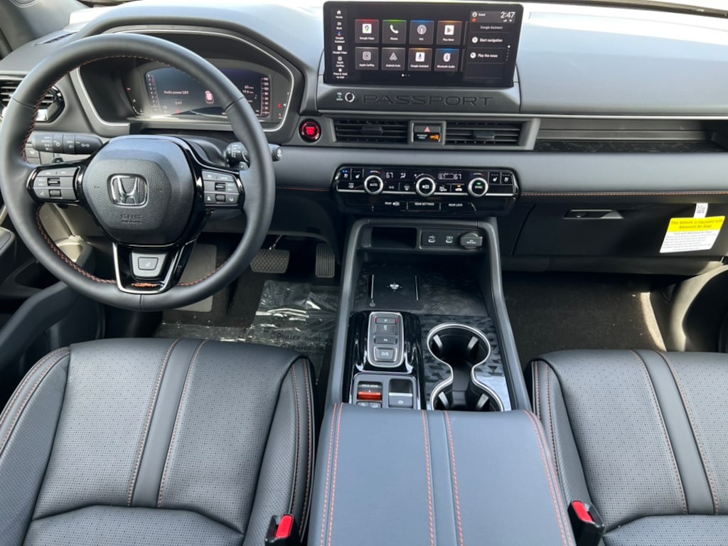 Platinum White Pearl 2026 Honda Passport TrailSport Elite AWD 10-Speed Automatic 3.5L V6 DOHC 24V 12 Speakers, 4-Wheel Disc Brakes, ABS Brakes, Adaptive Cruise Control: Adaptive Cruise Control (ACC) with Low-Speed Follow, Air Conditioning, Alloy wheels, Apple CarPlay/Android Auto, Auto High-beam Headlights, Auto-dimming door mirrors, Auto-dimming Rear-View mirror, Automatic temperature control, Blind Spot Information (BSI) System warning, Brake Assist, Compass, Delay-off headlights, Driver door bin, Driver vanity mirror, Driver's Seat Mounted Armrest, Dual front impact airbags, Dual front side impact airbags, Dual-Climate Control, Electronic Stability Control, Emergency communication system: HondaLink, Four wheel independent suspension, Front anti-roll bar, Front Bucket Seats, Front Center Armrest, Front Fog Lights, Front reading lights, Fully Automatic Headlights, Heated & Cooled Front Bucket Seats, Heated Front Seats, Heated Rear Seats, Heated Sideview Mirrors, Heated Steering Wheel, HVAC memory, Illuminated Entry, Knee airbag, Lane departure: Lane Keeping Assist System (LKAS) active, Leather steering wheel, Low tire pressure warning, Memory seat, Navigation system: Google Maps, Occupant sensing airbag, Outside Temperature Display, Overhead airbag, Overhead Console, Panic Alarm, Passenger door bin, Passenger seat mounted armrest, Passenger vanity mirror, Perforated Leather Seat Trim, Power Adjusting Driver Seat, Power Liftgate, Power Moonroof, Power passenger seat, Power Sideview Mirrors, Power Steering, Power Windows, Radio data system, Radio: Bose Premium Sound System w/12 Speakers, Rain Sensing Wipers, Rear air conditioning, Rear anti-roll bar, Rear reading lights, Rear seat center armrest, Rear Spoiler, Rear Window Wiper, Rear-View Camera, Rear/Front Window Defroster, Remote Keyless Entry, Security System, Speed Control, Speed-Sensing Steering, Split Folding Rear Seat, Steering Wheel Mounted Controls, Tachometer, Telescoping steering wheel, Tilt steering wheel, Traction Control, Trip computer, Turn signal indicator mirrors, Variably intermittent wipers, Ventilated front seats, Wheels: 18" Berlina Black Machine Face Alloy.