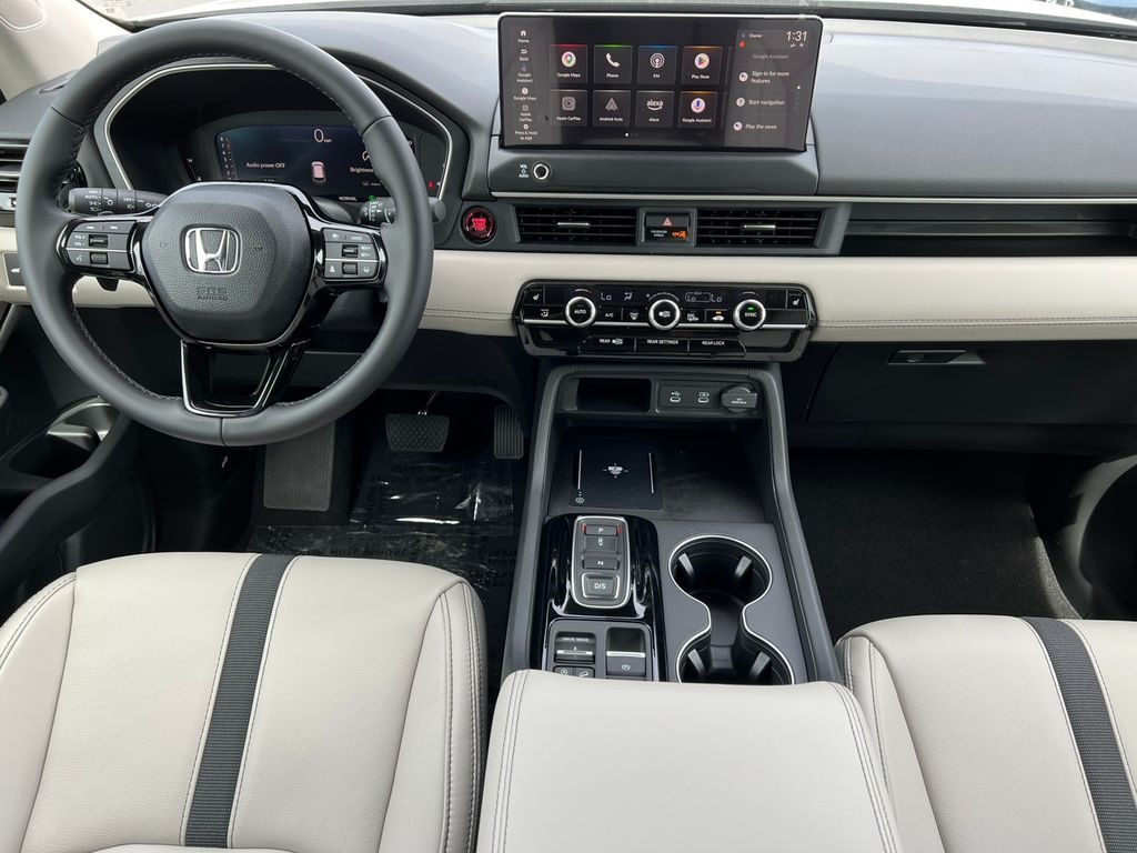 Solar Silver Metallic 2026 Honda Pilot EX-L AWD 10-Speed Automatic 3.5L V6 DOHC 24V 3rd Row Seats, 4-Wheel Disc Brakes, 9 Speakers, ABS Brakes, Adaptive Cruise Control: Adaptive Cruise Control (ACC) with Low-Speed Follow, Air Conditioning, Alloy wheels, Apple CarPlay/Android Auto, Auto High-beam Headlights, Auto-dimming Rear-View mirror, Automatic temperature control, Blind Spot Information (BSI) System warning, Brake Assist, Bumpers: body-color, Compass, Delay-off headlights, Driver door bin, Driver vanity mirror, Dual front impact airbags, Dual front side impact airbags, Dual-Climate Control, Electronic Stability Control, Emergency communication system: HondaLink, Four wheel independent suspension, Front anti-roll bar, Front Bucket Seats, Front Center Armrest, Front Fog Lights, Front reading lights, Fully Automatic Headlights, Heated Front Bucket Seats, Heated Front Seats, Heated Sideview Mirrors, HondaLink, HondaLink Subscription Services, Illuminated Entry, Knee airbag, Lane departure: Lane Keeping Assist System (LKAS) active, Leather-Trimmed Seat Trim with Fabric Accent, Low tire pressure warning, Memory seat, Navigation system: Google Maps, Occupant sensing airbag, Outside Temperature Display, Overhead airbag, Overhead Console, Panic Alarm, Passenger door bin, Passenger vanity mirror, Power Adjusting Driver Seat, Power Liftgate, Power passenger seat, Power Sideview Mirrors, Power Steering, Power Windows, Radio data system, Radio: 245-Watt Audio System, Rear air conditioning, Rear anti-roll bar, Rear reading lights, Rear seat center armrest, Rear Spoiler, Rear Window Wiper, Rear-View Camera, Rear/Front Window Defroster, Reclining 3rd row seat, Remote Keyless Entry, Security System, Speed Control, Speed-Sensing Steering, Speed-Sensitive Wipers, Split Folding Rear Seat, Steering Wheel Mounted Controls, Tachometer, Telescoping steering wheel, Tilt steering wheel, Traction Control, Trip computer, Turn signal indicator mirrors, Variably intermittent wipers, Wheels: 18" Pewter Gray Machined Face.